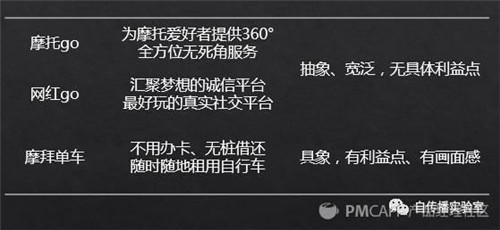從產(chǎn)品定位來看,“一個匯聚夢想的誠信平臺,也是最好玩的真實(shí)社交平臺”比前面那個案例的“為摩托愛好者提供360°全方位無死角服務(wù)”更虛無縹緲。因此,“一句話能說清,一聽就感興趣”就無從談起了。