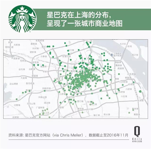 以目前星巴克在全球布局最密集的城市之一上海為例:目前近 500 家門店已經(jīng)覆蓋整個(gè)市中心、以及后期開發(fā)出來的數(shù)個(gè)城市副中心。