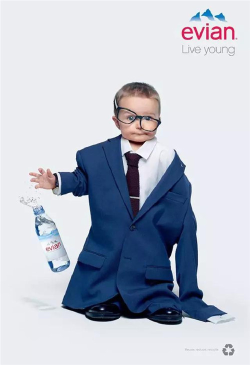 今年依云寶寶的核心創(chuàng)意在于 Oversize,即喝了依云水,就能像嬰兒一樣看待這個(gè)世界,在視覺呈現(xiàn)上,它們讓寶寶們穿上超大碼的成人時(shí)裝。如果說衣服代表了身份的話,這些穿著時(shí)裝造型的寶寶正是依云現(xiàn)在想要吸引的年輕顧客,而用 Evian 的全球營銷總監(jiān) Patricia Oliva 的話說,這些年輕人很可能并沒有看過當(dāng)年的依云寶寶電視廣告。