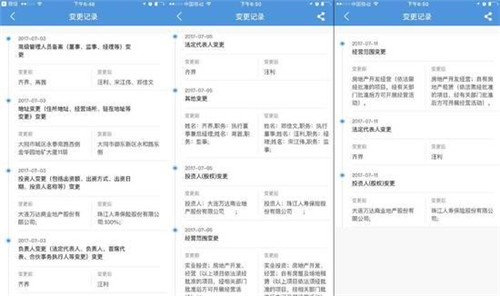 工商信息顯示,大同萬達房地產(chǎn)開發(fā)有限公司、南昌西湖萬達廣場投資有限公司和崇州萬達廣場置業(yè)有限公司依次于2017年7月3日、7月5日和7月11日發(fā)生了信息變更,單一股東由“大連萬達商業(yè)地產(chǎn)股份有限公司”變更為“珠江人壽保險股份有限公司”,法人均由“齊界”變更為“汪利”,董監(jiān)高人員也全面“換血”。