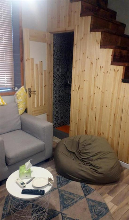 室內(nèi)總面積大概20平方米,被分隔為上下兩層。房屋雖小,家具及電器卻十分齊全。一樓有冰箱、洗衣機(jī)、電視等家電,一人坐的沙發(fā)和懶人沙發(fā)供休閑,布置緊湊,一角的衛(wèi)生間可容納一人洗漱;二層則放置了一張雙人床和一張氣墊床?!俺肆酪路环奖?,其余的體驗(yàn)我們都挺滿意的”,兩人告訴記者,“民宿更有老上海味道,退房也只需要把鑰匙放在門口的箱子里,非常方便?!?/font>