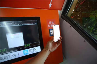 將商品放置在打包臺,有打包袋可以自行取用,旁邊的電腦上也就顯示了所購商品的數(shù)量和價格,選擇微信或是支付寶結(jié)算,調(diào)出付款碼,在電腦旁掃碼裝置上掃描就可以完成結(jié)賬,這時候,超市出去的大門就打開了。