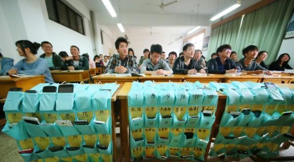 此前已經(jīng)有一些大學(xué)課堂施行“課前上交手機(jī)”,圖為洛陽理工學(xué)院的學(xué)生課前上交手機(jī),每個手機(jī)一個“機(jī)位”。
