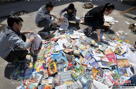 日前,河北省邯鄲市“掃黃打非”領(lǐng)導(dǎo)小組辦公室組織開展“2016年邯鄲市侵權(quán)盜版及非法出版物集中銷毀”活動。圖為工作人員現(xiàn)場銷毀侵權(quán)盜版及非法出版物。郝群英攝/光明圖片