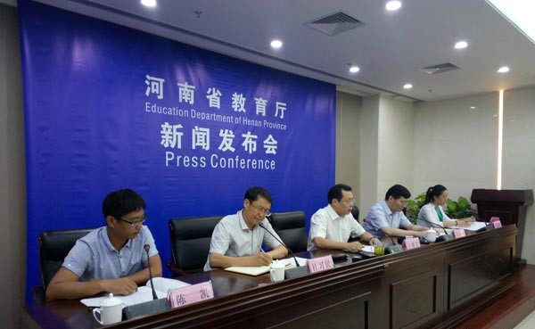 8月23日上午9時,河南省教育廳召開新聞通氣會,通報了《河南省深化考試招生制度改革實施方案》(以下簡稱《方案》)的有關(guān)情況?! “凑铡斗桨浮芬?,我省從2018年秋季入學的普通高中一年級學生開始啟動高考綜合改革,考生總成績由統(tǒng)一高考的語、數(shù)、外3科成績和高中學業(yè)水平3個選考科目成績組成。招生錄取實行基于統(tǒng)一高考成績和高中學業(yè)水平考試成績、參考學生綜合素質(zhì)評價擇優(yōu)錄取機制?! ?strong>總體目標 到2020年,初步形成分類考試、綜合評價、多元錄取的考試招生模式,進一步健全促進公平、科學選才、監(jiān)督有力的體制機制,構(gòu)建順應時代要求、符合教育規(guī)律和河南省情的考試招生制度。