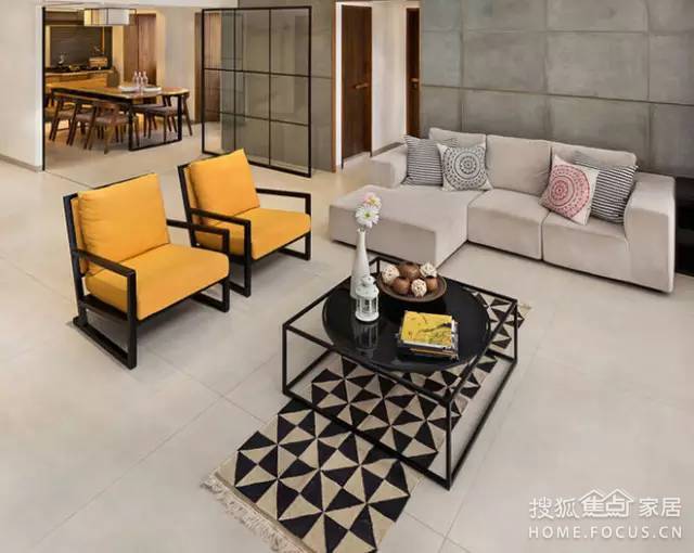 沒有了電視的束縛,客廳擺放沙發(fā)可以更加靈活了。三人座、雙人座、單人座,以及不同樣式的沙發(fā)靈活搭配起來。
