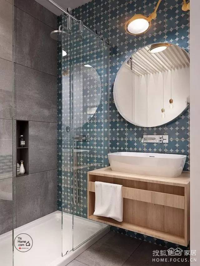 ▲ 補救妙招:后期多設(shè)光源,比如浴柜的鏡前燈。有的鏡前燈是自帶電源的,十分方便,或者直接安一個臺燈固定在墻面上,款式、顏色最好還是和衛(wèi)生間的風(fēng)格保持一致。也可將浴霸燈泡換成節(jié)能燈管。