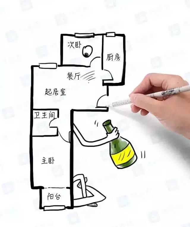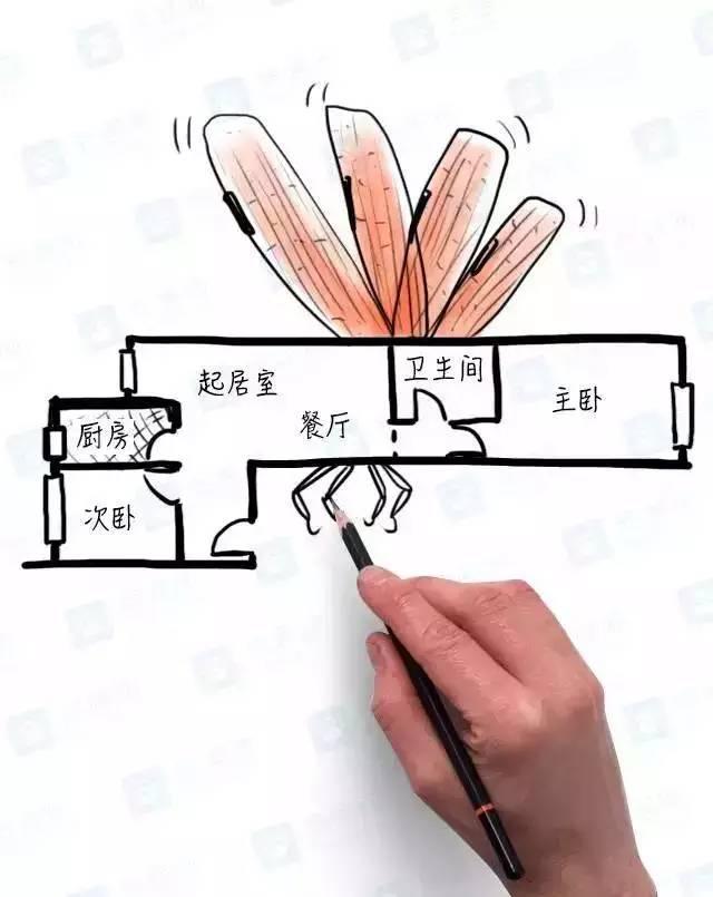 4、從進(jìn)門開始,要到臥室有三個拐角,實際空間利用率降低,主臥離衛(wèi)生間實在太遠(yuǎn),冬天想上個廁所真是折磨人了。