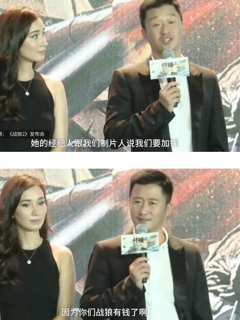 “她的經(jīng)紀人跟我們的制片人說要加錢,不加錢就不來,她們說因為你們《戰(zhàn)狼》劇組有錢,我們要加價?!?/p>