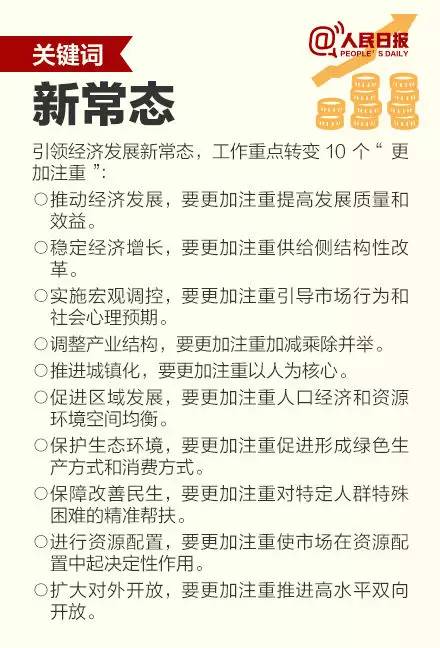 會(huì)議認(rèn)為,認(rèn)識(shí)新常態(tài)、適應(yīng)新常態(tài)、引領(lǐng)新常態(tài),是當(dāng)前和今后一個(gè)時(shí)期我國經(jīng)濟(jì)發(fā)展的大邏輯,這是綜合分析世界經(jīng)濟(jì)長周期和我國發(fā)展階段性特征及其相互作用作出的重大判斷。要適應(yīng)新常態(tài),需要在理論上作出創(chuàng)新性概括,在政策上作出前瞻性安排。