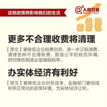 這次會(huì)議還用十個(gè)“更加注重”指明了新常態(tài)下應(yīng)該“怎么干”。更為關(guān)鍵的是,這個(gè)看似“高大上”的經(jīng)濟(jì)工作會(huì)議,其實(shí)離你我并不遙遠(yuǎn):社會(huì)保險(xiǎn)費(fèi)有望降低、非戶籍人口也能住公租房、鼓勵(lì)房企適當(dāng)降房價(jià)……中央敲定下的這些事,新的一年毫無疑問將給你我生活帶來深刻影響。