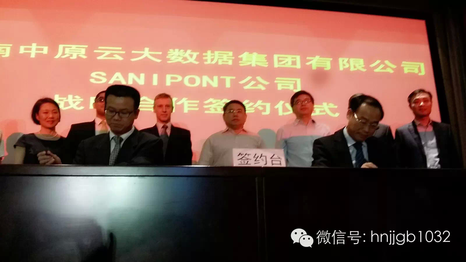 剛剛交付的中原云平臺今天上午在鄭州中原福塔簽下了跨境合作的第一單——河南中原云大數(shù)據(jù)集團有限公司&美國 Sanipont international LLC公司戰(zhàn)略合作協(xié)議。
