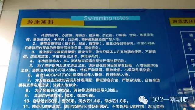 記者在游泳館大廳到墻壁上看到,提示牌上寫著11條游泳須知,第2條顯示:“攜帶貴重物品(如手機(jī)、現(xiàn)金、首飾等),請(qǐng)主動(dòng)到寄存處。本館不對(duì)其在儲(chǔ)物柜內(nèi)存放到貴重物品損失負(fù)責(zé),遺失自負(fù)。”