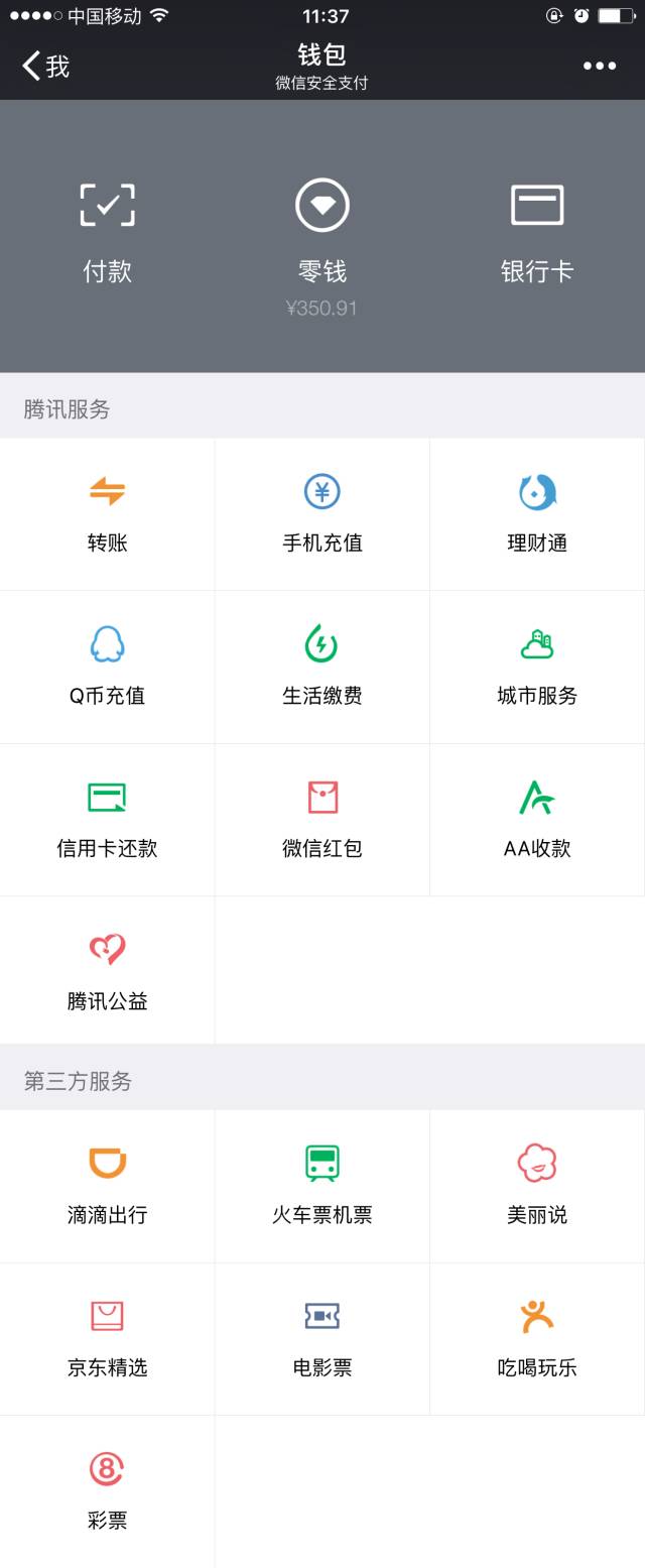 可用地盤:京東、滴滴出行、大眾點(diǎn)評(píng)、美團(tuán)、餓了么、攜程等……更多用法早已經(jīng)藏在微信“錢包”里了