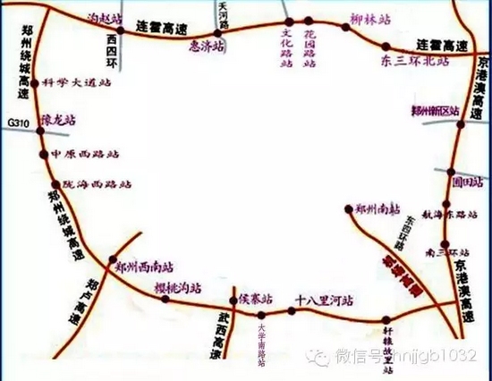 (一)一環(huán):鄭州繞城高速公路(由京港澳、連霍、鄭少、鄭民等四條高速公路相連成為鄭州外環(huán));