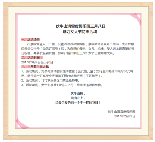 而且,為迎接女神節(jié)的到來,伏牛山滑雪度假樂園還推出了三重大禮!