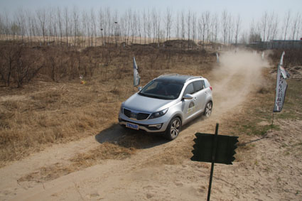 報(bào)名參加這次越野活動的河南交通廣播的愛心車友達(dá)到100多名。活動現(xiàn)場,上百號人讓平時(shí)寂靜的黃河灘熱鬧起來,河邊的一塊空地上,一百多面旗子在迎風(fēng)飄揚(yáng)——“河南交通廣播”的LOGO下赫然印著“越野汽車公開體驗(yàn)營”九個(gè)大字,背景板不遠(yuǎn)處,就是體驗(yàn)駕馭越野車的賽場。駝峰、馬蹄坑、滾木路障、彈坑路、沙土路、連續(xù)轉(zhuǎn)彎……墨綠色背景的提示牌讓越野的氣息撲面而來。