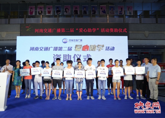 映象網(wǎng)訊 8月3日上午,2016河南交通廣播、河南省福建商會(huì)第二屆愛心助學(xué)資助儀式在廣播大廈舉行。交通廣播與愛心企業(yè)把首批10萬元愛心助學(xué)基金捐贈(zèng)給20名寒門學(xué)子。