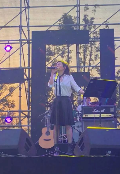 為了讓所有的樂隊順利演出,主持人丁適在后臺一站就是十幾個小時,曬到鼻尖通紅。