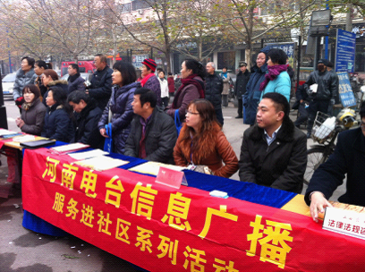 2011年12月2日(全國法制宣傳日前夕)河南人民廣播電臺信息廣播聯(lián)合建中街道辦事處在碧波園舉行了法制服務(wù)進社區(qū)活動?;顒俞槍θ嗣袢罕婈P(guān)心的生活問題、需要法治解決的現(xiàn)實問題,從情理、道理、法理以及憲法、法律、法規(guī)等等方面給予指導(dǎo),通過答問題之疑、解法律之惑,真正為人民群眾排憂解難。使法制宣傳教育深入人心,認同法治精神,接受法治理念,共創(chuàng)和諧社會。