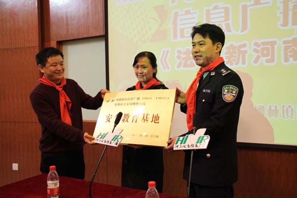 2012年3月26日是第十七個“全國中小學(xué)安全教育日”,在教育日當(dāng)天舉行“中小學(xué)安全教育基地”掛牌儀式,河南電臺信息廣播依托日常欄目《法制新河南》的整合資源,將中小學(xué)安全宣傳教育常態(tài)化。據(jù)河南電臺信息廣播總監(jiān)李金鋒介紹,“教育基地建立以后,河南電臺信息廣播將聯(lián)合鄭州市公安局柳林分局,通過信息廣播AM603、FM105.6廣播頻率,以《法制新河南》欄目為陣地,長期持久的宣傳中小學(xué)安全教育知識,并為柳林鎮(zhèn)第四小學(xué)的學(xué)生提供書籍、器械等安全教育的物品,節(jié)目主持人和柳林分局的警官還將不定期的深入校園內(nèi),跟學(xué)生們面對面的交流、一對一的輔導(dǎo)?!?br />