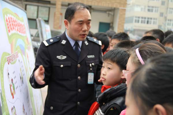 小學生們認真聽警察叔叔講解安全知識