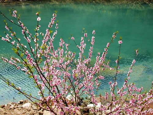 “人間四月芳菲盡,山寺桃花始盛開”。在山水環(huán)繞、風(fēng)景迷人的八里溝景區(qū)內(nèi),正是桃花怒放、紅艷欲滴的大好時(shí)節(jié)。沒有來(lái)得及擁抱初春、拂春、探春之旅的游客,可以動(dòng)身來(lái)一場(chǎng)鬧春之旅,“蝶兒飛、鳥兒忙、山水鹿鳴齊歡暢”的八里溝景區(qū)聲色正濃,鬧春正當(dāng)時(shí)! 桃花灣紅艷欲滴,山水環(huán)繞,風(fēng)景迷人,桃樹滿山,春來(lái)桃花怒放,紅艷欲滴,所以叫“桃花灣”。由于遠(yuǎn)在深山春來(lái)遲,花開花謝都較山下晚。唐代大詩(shī)人白居易的“人間四月芳菲盡,山寺桃花始盛開”正是最好的寫照?;▍驳拿鄯洹⒑χ覒?,桃花與泉水相映成趣,它們豐富的豈止是山谷的神韻,更多的是大自然與游客心靈上對(duì)聲色春天的共鳴。