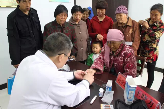 醫(yī)生正在為79歲的老奶奶測(cè)血糖