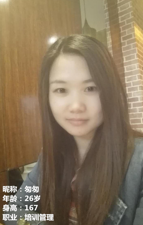 大家好,我是匆匆,今年26歲,在鄭州從事培訓(xùn)管理工作。繁忙的工作和生活,讓我不知不覺的剩了下來,回頭觀望來時(shí)的路,卻驚訝地發(fā)現(xiàn)這么多年我的人生旅途中的桃花卻沒有盛開過,不禁陷入憂思和反思中,為什么我的條件也不差,卻一直過著單身的生活,或許自己太過忙碌,忘記了身邊的風(fēng)景,或許平時(shí)太過理性,在成長的過程中太過注重成熟忽視了一見傾心的偉大力量,又或許自己不夠勇敢,不敢去追求那份不論位置但求無愧于心的愛情。時(shí)光匆匆的走過,不知不覺我已經(jīng)過了二十五開始進(jìn)入女人真正衰老的旅程,好害怕在這最美好年華任憑自己悄悄地老去,因此今天我為了自己的幸福勇敢地跨出了第一步,你是在那個(gè)地方等我的人嗎,對(duì)于另一半說實(shí)話我還真的沒有什么條條框框,但是就像買鞋子,不要求名貴漂亮,但一定要合腳。我希望他可以成熟、穩(wěn)重,可以作為一個(gè)依靠在我身邊,無論遇見什么事情都可以在一起承擔(dān),至于長相及其他條件,希望他身高175cm以上吧,愿意在鄭州定居,可以養(yǎng)活自己和自己的父母即可。