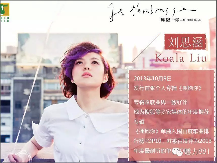 6月1日11:00-12:00,劉思涵將做客魅力881《音樂正能量》。