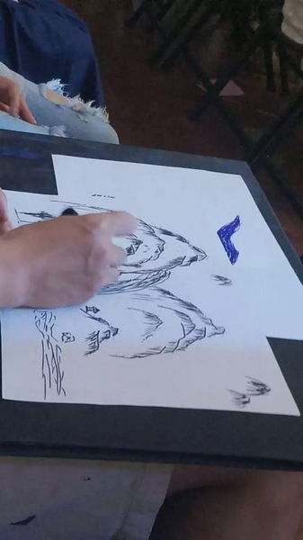 他的畫板上就出現(xiàn)了這幅美景