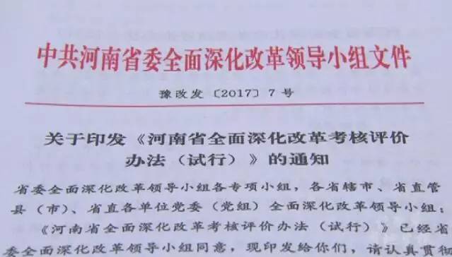 今年7月《河南省全面深化改革考核評(píng)價(jià)辦法》正式出臺(tái),表?yè)P(yáng)先進(jìn)、懲戒落后、追效問責(zé),考核評(píng)價(jià)辦法成為一支有力的“指揮棒”。