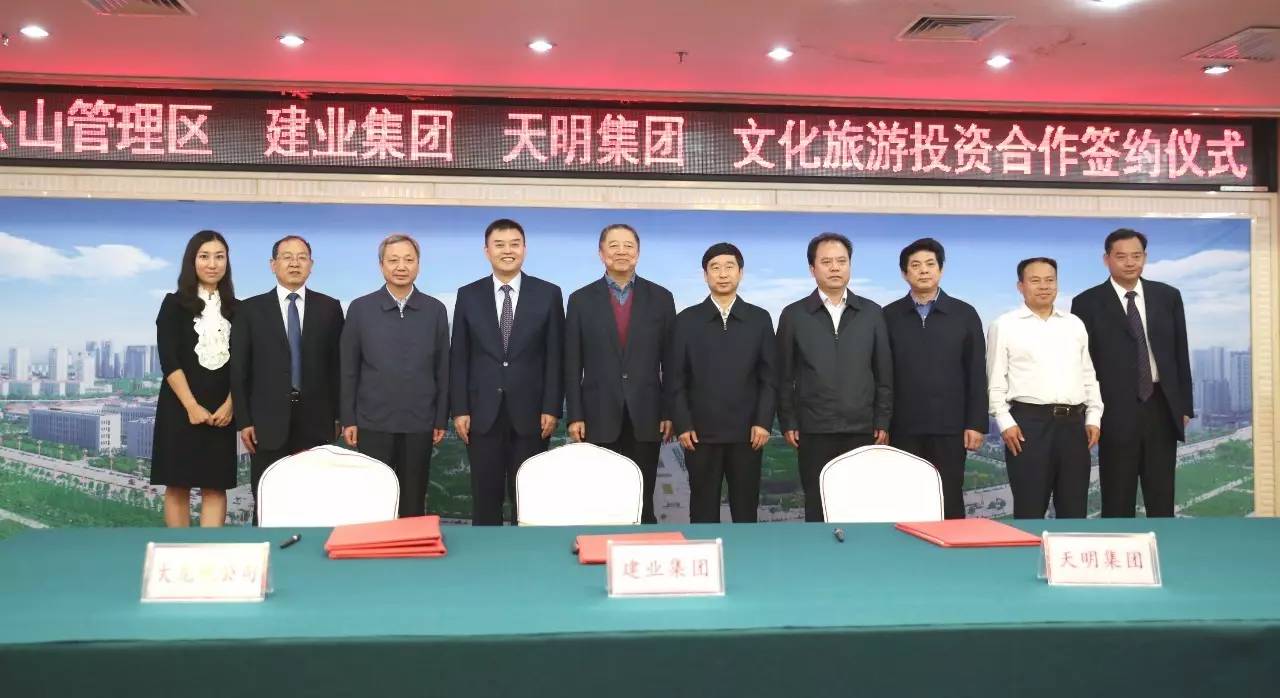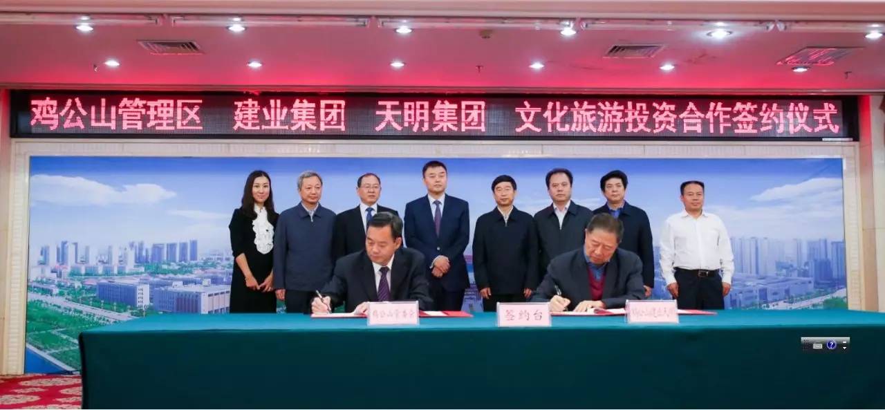 2017年9月2日上午,雞公山管理區(qū)與建業(yè)集團(tuán)、天明集團(tuán)在信陽市舉行文化旅游投資會(huì)暨簽約儀式。此次簽約項(xiàng)目總面積287平方公里,初步構(gòu)思“一園十三景”,計(jì)劃總投資300~500億元。未來,兩家企業(yè)將攜手打造文化旅游項(xiàng)目,助力信陽雞公山脫貧攻堅(jiān)、建設(shè)美麗鄉(xiāng)村。信陽市市委書記喬新江、市長尚朝陽、建業(yè)集團(tuán)董事長胡葆森、建業(yè)集團(tuán)聯(lián)席董事長劉衛(wèi)星、建業(yè)集團(tuán)副總裁陳劍、天明集團(tuán)董事長姜明、天明城建集團(tuán)總裁郭穎、雞公山管委會(huì)黨委書記、主任趙安虎等領(lǐng)導(dǎo)出席簽約儀式。