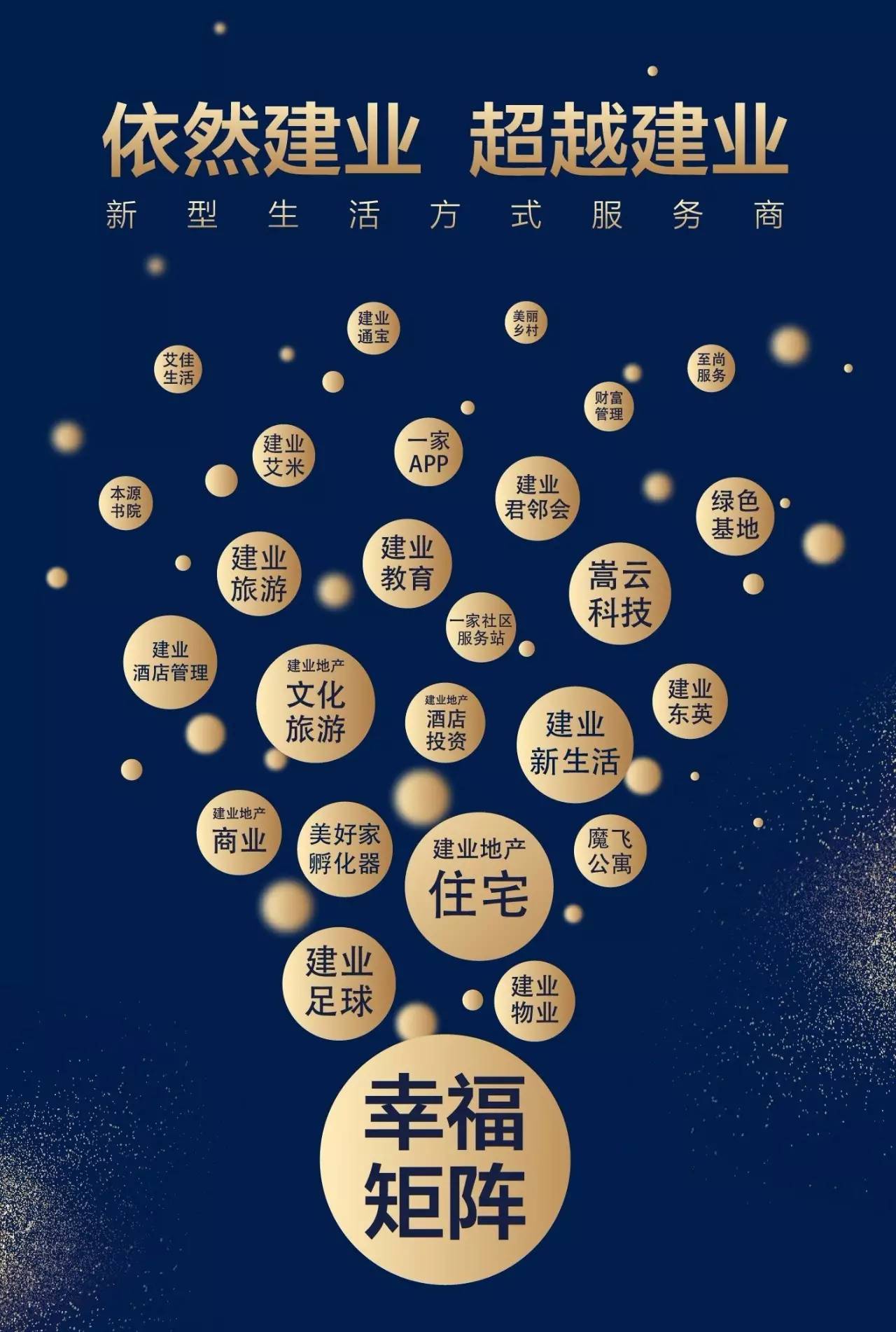 在消費(fèi)升級(jí)、需求多元及互聯(lián)網(wǎng)普及等大背景下,遵循市場變化及客戶需求積極轉(zhuǎn)型,建業(yè)集團(tuán)于2015年正式開啟由“房地產(chǎn)開發(fā)商”向“新型生活方式服務(wù)商”戰(zhàn)略轉(zhuǎn)型。深度思考“建業(yè)+地產(chǎn)、+文化、+旅游、+農(nóng)業(yè)、+商業(yè)、+教育、+體育、+酒店、+科技、+金融”的大商業(yè)生態(tài)發(fā)展之道。