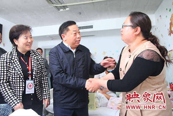 映象網(wǎng)訊(記者 王寬 文/圖)4月23日上午,河南省援疆工作前方指揮部總指揮劉金山、河南省紅十字會黨組書記、常務(wù)副會長趙國新一行來到河南省胸科醫(yī)院病房,看望來自新疆哈密地區(qū)的10名先心病患兒及家屬。這10名患兒是河南省紅十字會開展“豫新緣紅十字愛心行動”的第二批救助對象,他們剛剛順利實施了手術(shù)治療。