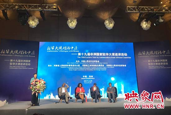 映象網(wǎng)快訊(記者 王邵怡 文/圖)3月29日,五位從非洲五個國家遠道而來的朋友來到鄭州,參加在這里舉辦的“駐華大使對話中原—第十九屆非洲駐華大使巡講活動”。這五位分別是來自贊比亞、納米比亞、津巴布韋、埃塞俄比亞和南非的駐華大使及參贊。他們到河南來推介自己的國家,希望連接起河南與非洲的經(jīng)貿(mào)往來與合作。