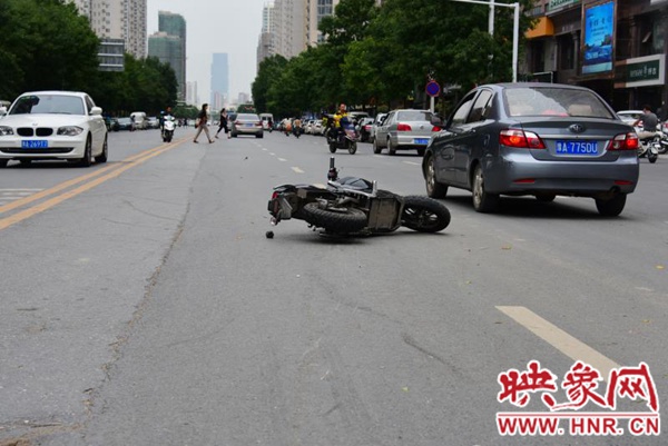 9月5日中午,鄭州市福元路上,一名初中男生騎電動(dòng)車(chē)送女同學(xué)回家。當(dāng)其由西向東行駛至福元路與鳳臺(tái)路交叉口時(shí),疑與一輛在路口左拐的出租車(chē)發(fā)生碰撞。電動(dòng)車(chē)失控倒下,女生從后座重重倒地,頭部、臉部受傷,全身抽搐,昏迷不醒。