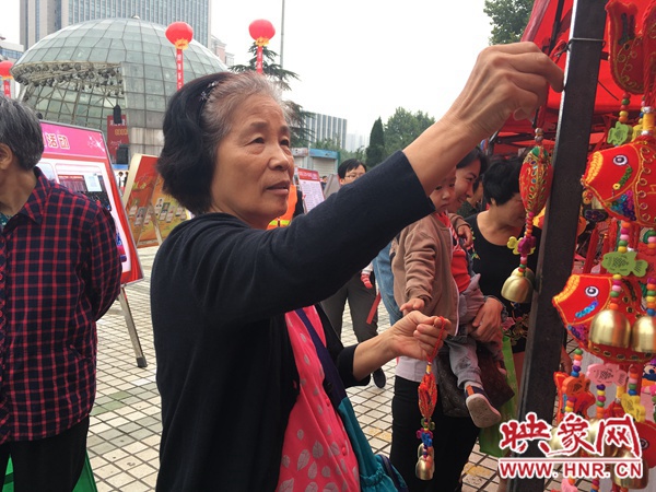 除了小朋友,現(xiàn)場還有很多老人們結(jié)伴在展臺前游逛。今年66歲的趙奶奶就站在一家布藝攤前,為自己身在國外的女兒挑選汽車掛飾。“她一直在國外,我就想給她買個有我們中國元素的東西掛在車?yán)铩!?/p>
