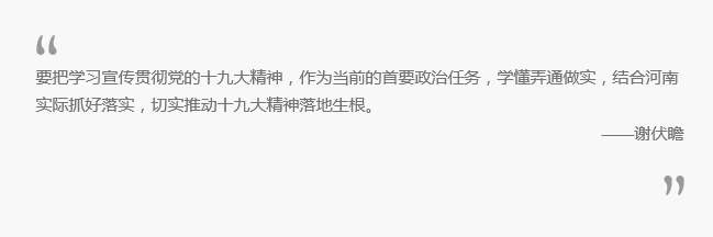 10月29日,省委書(shū)記、省人大常委會(huì)主任謝伏瞻到蘭考縣,宣講黨的十九大精神并就學(xué)習(xí)宣傳貫徹提出要求。