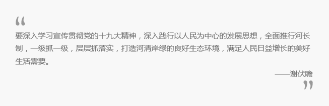 謝伏瞻指出,我們要認(rèn)真學(xué)習(xí)宣傳貫徹十九大精神,按照省委省政府制定的方案,全面落實(shí)河長(zhǎng)制,強(qiáng)化屬地責(zé)任,健全長(zhǎng)效機(jī)制,細(xì)化措施辦法,嚴(yán)格追責(zé)問(wèn)責(zé),保護(hù)水資源,治理水污染,修復(fù)水生態(tài)。各級(jí)領(lǐng)導(dǎo)要負(fù)責(zé),各項(xiàng)制度要落地,各級(jí)政府要投入,各項(xiàng)工作要扎實(shí),合力攻堅(jiān),真正形成人人參與、共建共享的良好局面。