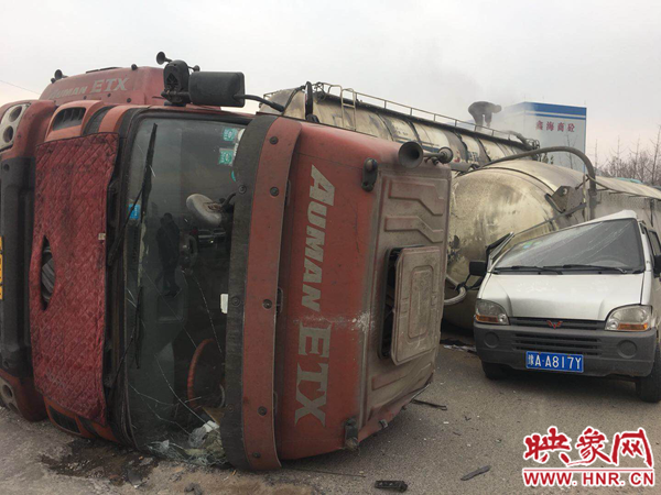 據(jù)了解,槽罐車司機(jī)姓李,身上有三處輕微骨折,正在醫(yī)院接受治療。