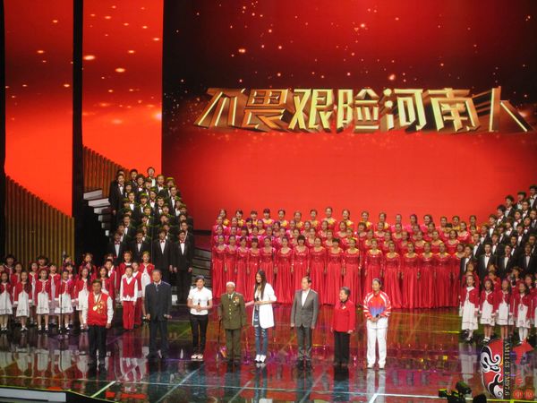 5月29日晚,在河南藝術(shù)中心現(xiàn)場(chǎng)直播的“河南電視臺(tái)《梨園春》特別節(jié)目——我是河南人”專場(chǎng)晚會(huì),沸騰了現(xiàn)場(chǎng)的2000名觀眾,震撼了電視機(jī)前的億萬觀眾。用歌聲、用唱腔,唱出了“大寫”的河南人形象。第九屆、十屆全國(guó)政協(xié)副主席、河南中華豫劇文化促進(jìn)會(huì)名譽(yù)會(huì)長(zhǎng)張思卿觀看了演出并給予高度評(píng)價(jià)。   省領(lǐng)導(dǎo)盧展工、郭庚茂、李克、孔玉芳、鄧凱、劉春良、劉懷廉、連維良、尹晉華、曹維新、劉新民、張程鋒、蔣篤運(yùn)、史濟(jì)春、徐濟(jì)超、陳雪楓、趙建才、王訓(xùn)智、龔立群、梁靜、高體健,全國(guó)政協(xié)教科文衛(wèi)體委員會(huì)副主任王全書等出席了晚會(huì)。 整臺(tái)晚會(huì)分為數(shù)個(gè)篇章,其中的“人民公仆贊”里,從《焦裕祿》的“百姓歌”,唱到《村官李天成》的吃虧歌;在“永遠(yuǎn)的豐碑——紅旗渠”中,紅旗渠特等勞模任羊成、張買江、郭秋英的到來,帶大家回到了那段崢嶸歲月……  最讓大家感動(dòng)的是馬金鳳、王立群、李文祥、李靈、胡葆森、馬艷麗、李高峰、孫甜甜8位優(yōu)秀河南人代表朗誦的“河南人”,把作為一名河南人的驕傲和自豪,傳遞給在場(chǎng)的每一位觀眾。而欄目組奔赴全國(guó)各地,采訪數(shù)十位河南籍名人的片段,更是引起現(xiàn)場(chǎng)觀眾的強(qiáng)烈共鳴,這個(gè)夜晚,“作為河南人的自豪”充盈在了每一個(gè)觀眾的掌聲里,“對(duì)于河南人的感動(dòng)”融合在了每一個(gè)觀眾的笑臉上?!斑@是一臺(tái)我看了感觸最多的晚會(huì),很長(zhǎng)時(shí)間都沒有看過這樣精彩的戲了?!蓖頃?huì)結(jié)束后,主要領(lǐng)導(dǎo)上臺(tái)和演職人員握手并合影留言。第九屆、十屆全國(guó)政協(xié)副主席、河南中華豫劇文化促進(jìn)會(huì)名譽(yù)會(huì)長(zhǎng)張思卿對(duì)于整臺(tái)晚會(huì)的評(píng)價(jià),讓演職人員都沸騰了起來,鼓掌聲和叫好聲響成一片?!?“首先我跟大家說,我是河南人!是洛陽人!”張思卿這句話一說完,在場(chǎng)的河南人集體鼓起掌來。“接下來我說三句話,第一句是,這是一臺(tái)非常精彩的演出!”(掌聲雷動(dòng))張思卿接著說,第二句是,這臺(tái)晚會(huì)所演的、所唱的,都是“正氣歌”。(掌聲繼續(xù))第三句是,大家所概括的河南人的精神,也是一種革命的精神,從干部來講,反映出的是“百姓大于天”;從普通人來說,只有通過艱苦奮斗和不懈的努力,才能夠取得良好的成績(jī),“概括起來就是,我們有了這種革命的精神,就能夠戰(zhàn)勝一切”!看到張思卿對(duì)“河南人精神”評(píng)價(jià)如此之高,大家都沸騰起來。