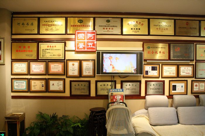 滿滿一面墻的獎(jiǎng)狀讓每一個(gè)來(lái)這里的人都能深刻的了解到阿五美食的嚴(yán)謹(jǐn)風(fēng)格,