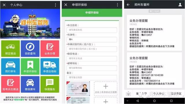 不出家門,也可以領到綠標自2015年7月27日起,鄭州車管所聯(lián)合鄭州環(huán)保局在微信公眾平臺推出了“微信申領環(huán)保標”的服務,如果您是“6年免檢”車輛的車主,即可通過微信平臺在線申領綠色環(huán)保標,申領成功后,會有專門的快遞人員送標到家。