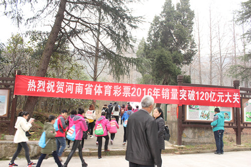 2017年1月1日元旦佳節(jié),“中國體育彩票”全國新年登高健身大會(華中主會場)暨信陽新年登雞公山健身大會“精彩開幕,來自社會各界的3000余名群眾、體彩代表及健身愛好者參加活動。新年登高意義深遠,在參與全民健身鍛煉體魄的同時,還能帶來美好的希望。在協(xié)辦單位河南省體育彩票管理中心的指示下,體彩信陽分中心組織了80名網點業(yè)主組成代表隊參賽,并在開幕式現(xiàn)場舉行了多種形式的宣傳活動。