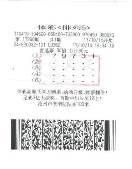 [摘要] 10月14日晚開獎的排列五第17280期,全國共開出一等獎47注,位于河南汝州市老消防隊東100米的4104820032101網(wǎng)點彩民中得35注,其中30注被彩民童先生中得。