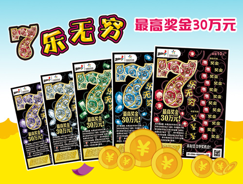 [摘要] 近日,“頂呱刮”家族又一新成員——“7樂無窮”火熱登陸我省,此票是一款數(shù)字類主題即開票,面值10元,頭獎30萬元,共有12次中獎機會。