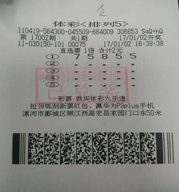 1月2日晚,第17002期排列五開獎(jiǎng),開獎(jiǎng)號(hào)碼是“75855”,漯河彩民喜中10萬(wàn)元大獎(jiǎng)1注,這也是當(dāng)?shù)?017年第1注排列五大獎(jiǎng)。