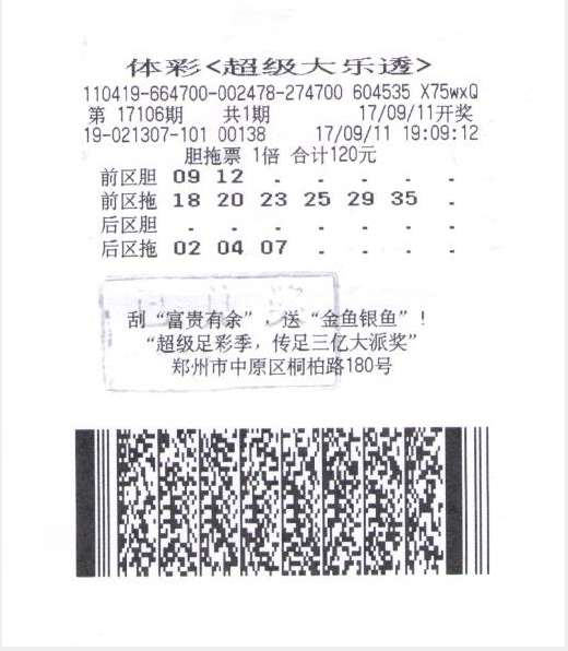 王先生的中獎彩票是一張120元的前區(qū)2膽6拖后區(qū)3碼的膽拖票。