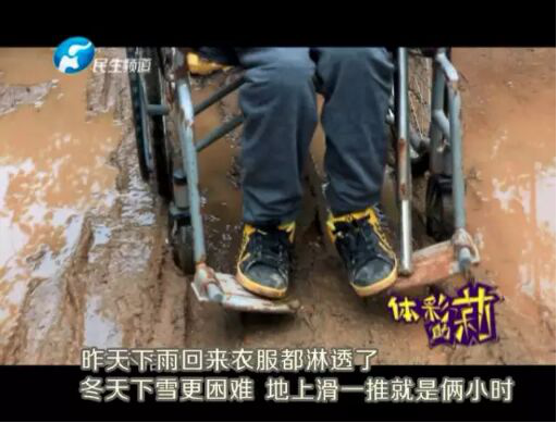 [摘要] 每周的兩三天時間里,一段頗不好走的山路上,總會出現(xiàn)這樣一家人的身影,坐在輪椅上的是女兒愛平,年僅42歲的她患尿毒癥已有十多年。
